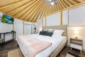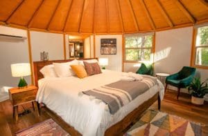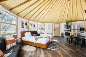 Deciding how to decorate your yurt can be challenging. You want an aesthetically pleasing area without using too much decor or furniture in this limited space. Our gallery is full of yurt design ideas you can utilize for your yurt. You’ll find indoor and outdoor decorating ideas to provide you with inspiration. Among our interior ideas for your yurt, you’ll discover cozy bed designs, small bathroom plans, and intimate seating arrangements for enjoying coffee in the morning. Give your outside area the same love as the interior with cozy chairs or benches to watch the sunrise or sunset on. Install a fire pit to gather around on those chillier evenings. No matter what your vision may be, you can use any of these yurt decorating ideas to spark some inspiration.