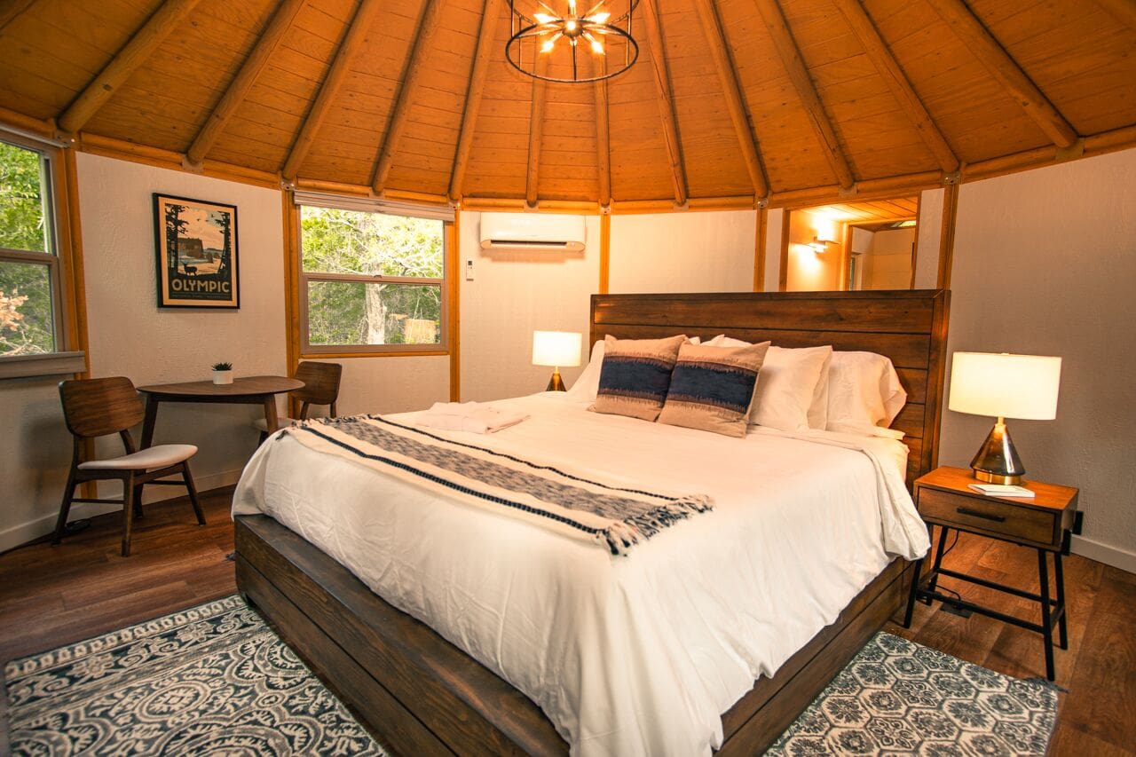 Deciding how to decorate your yurt can be challenging. You want an aesthetically pleasing area without using too much decor or furniture in this limited space. Our gallery is full of yurt design ideas you can utilize for your yurt. You’ll find indoor and outdoor decorating ideas to provide you with inspiration. Among our interior ideas for your yurt, you’ll discover cozy bed designs, small bathroom plans, and intimate seating arrangements for enjoying coffee in the morning. Give your outside area the same love as the interior with cozy chairs or benches to watch the sunrise or sunset on. Install a fire pit to gather around on those chillier evenings. No matter what your vision may be, you can use any of these yurt decorating ideas to spark some inspiration.